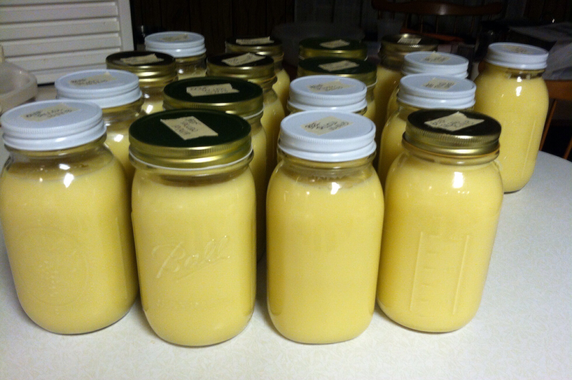 Here’s my final “numbers”: Our tallow yield was 60% of the weight of the suet chunks. After two 9 hour days of working in rendering about 110 pounds of suet, we got about 66 pounds of tallow. Each quart jar fits about 1.6 pounds of tallow and each 1 gallon bucket fits about 7.5 pounds of tallow. Pricing: $12/Q of finished tallow, or $48/gallon of finished tallow, or for those adventurous folks who wanna try their own hand at rendering grass-fed suet: $3/pound of suet. π