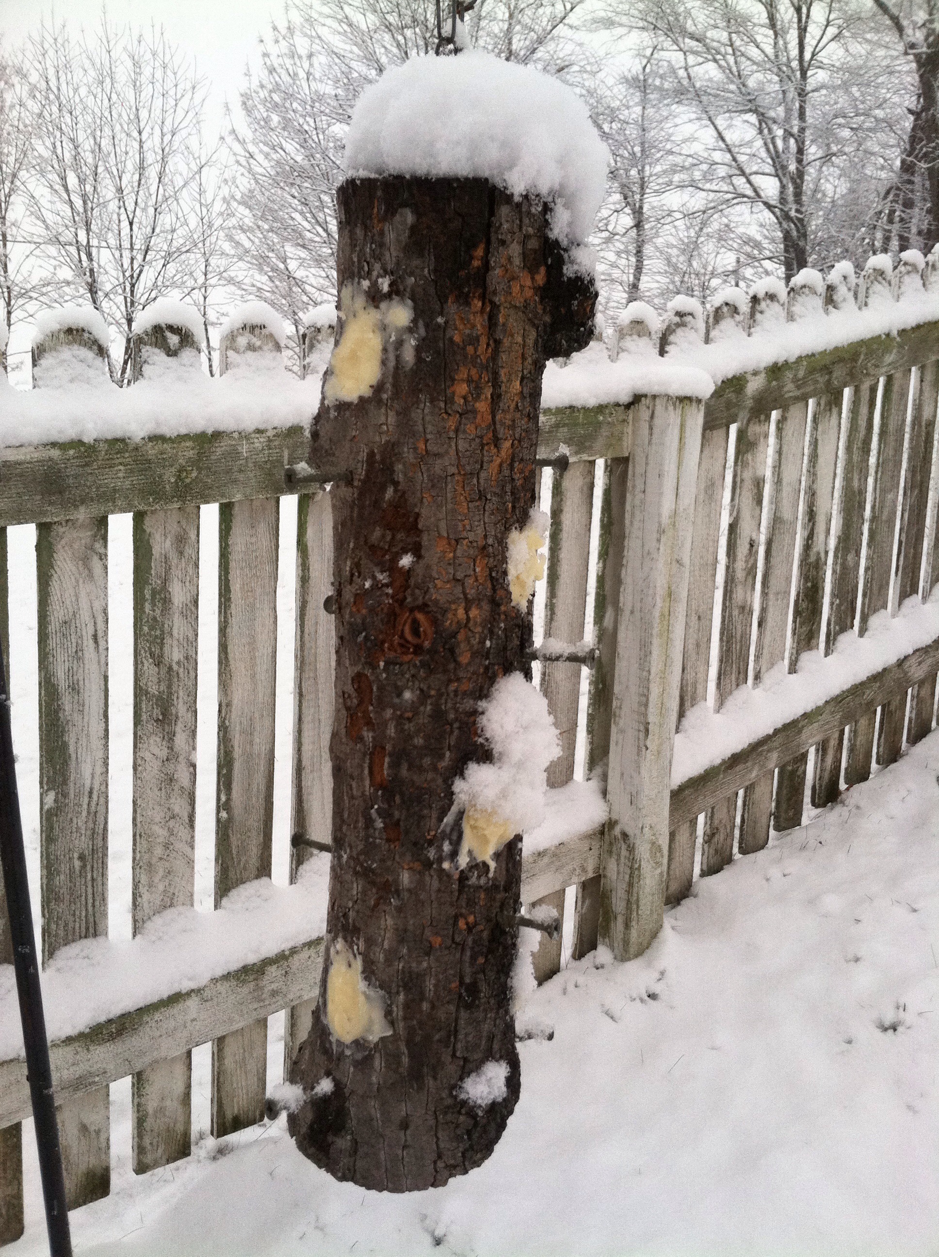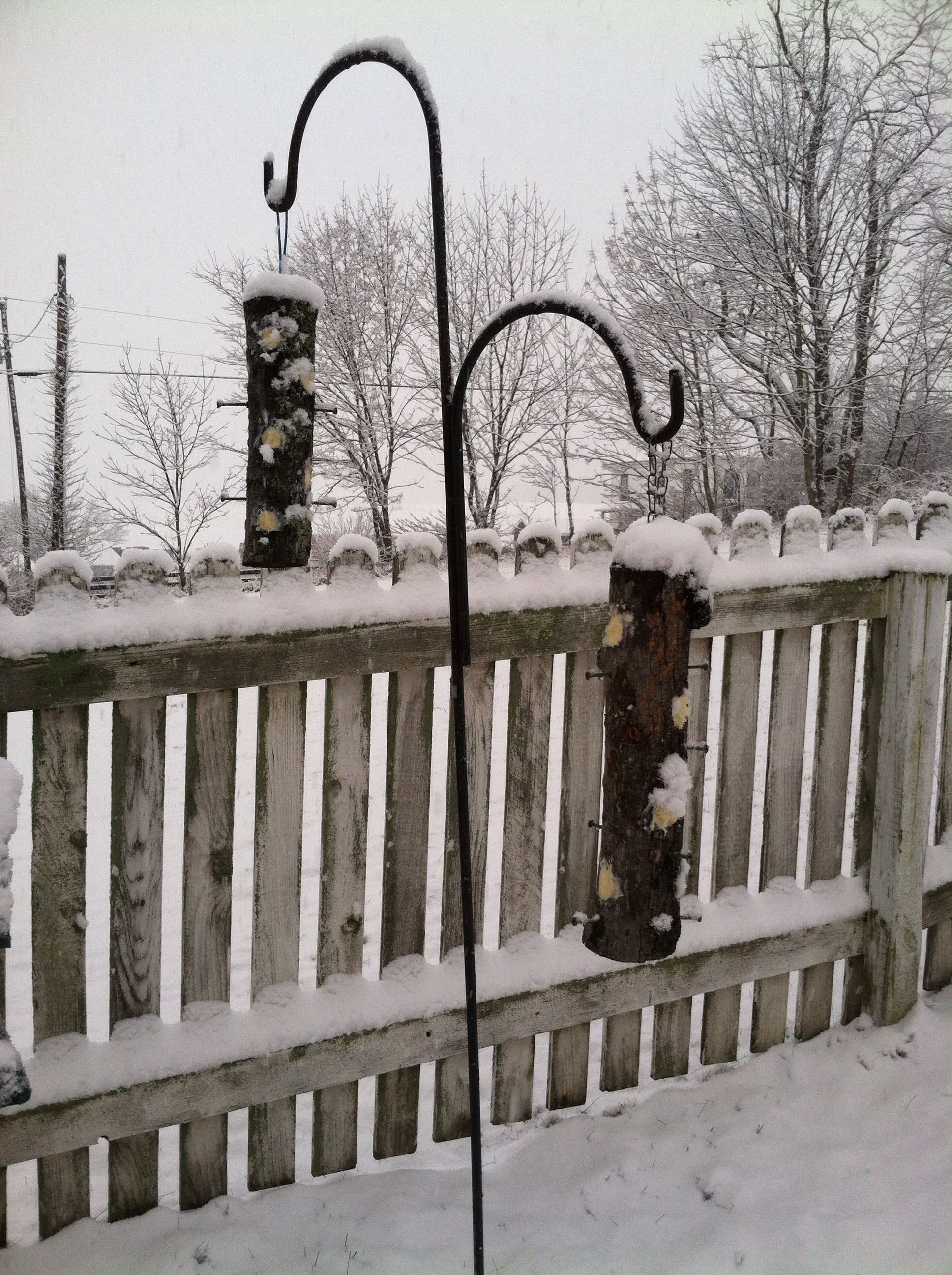 And yes, the birds are happier now around here.Β We re-filled their log feeders just in time for this week’s snow storm! π