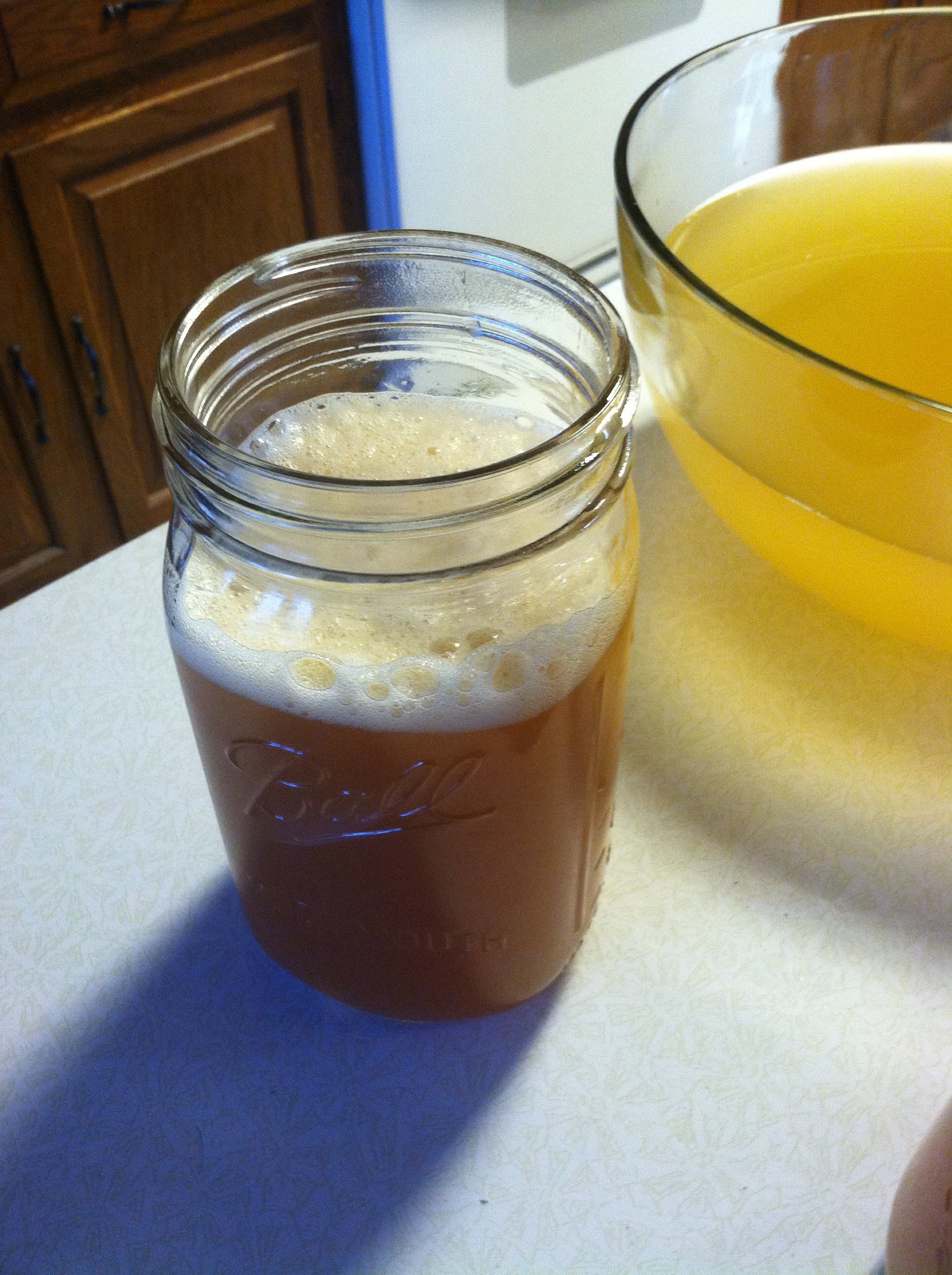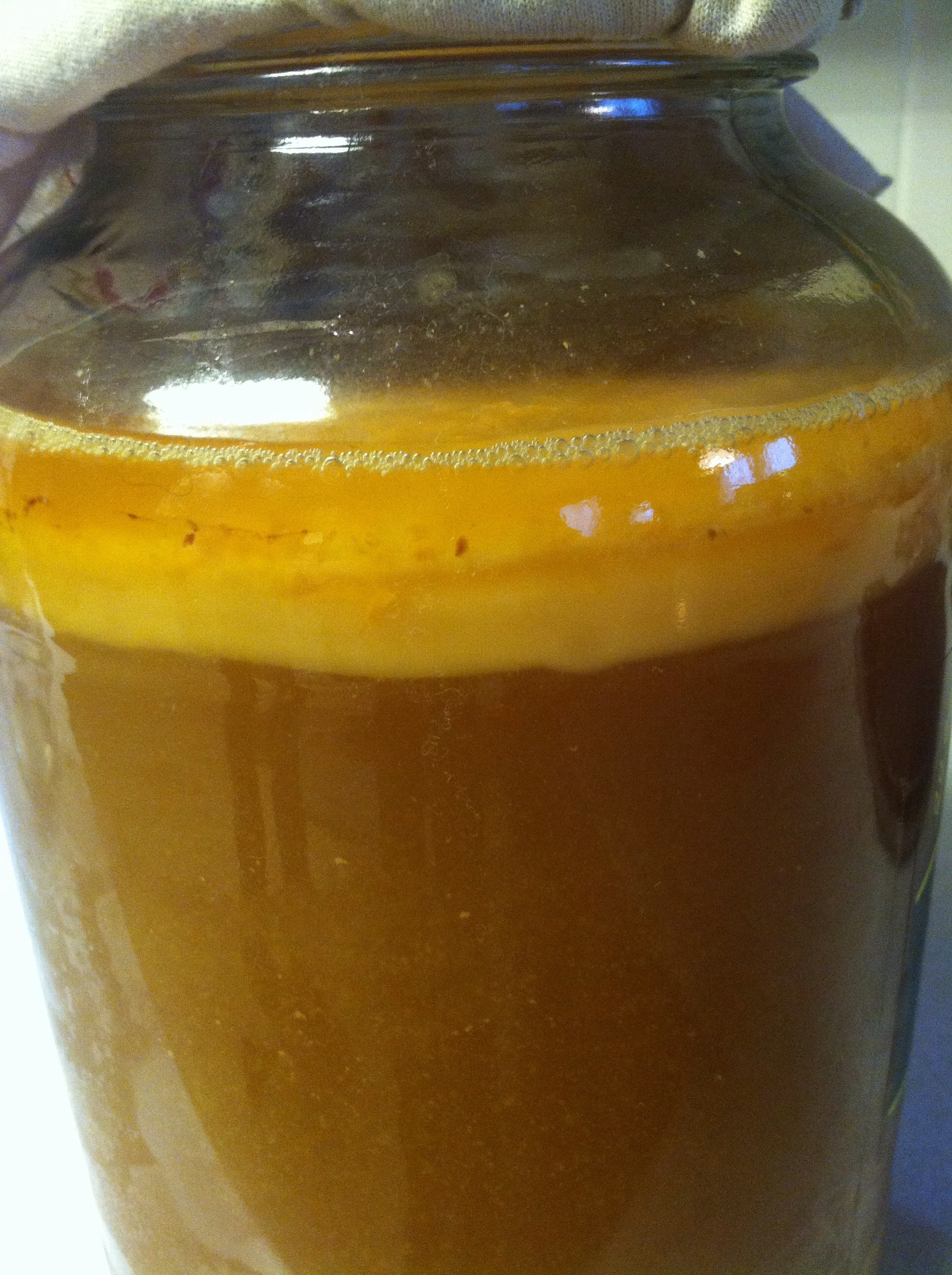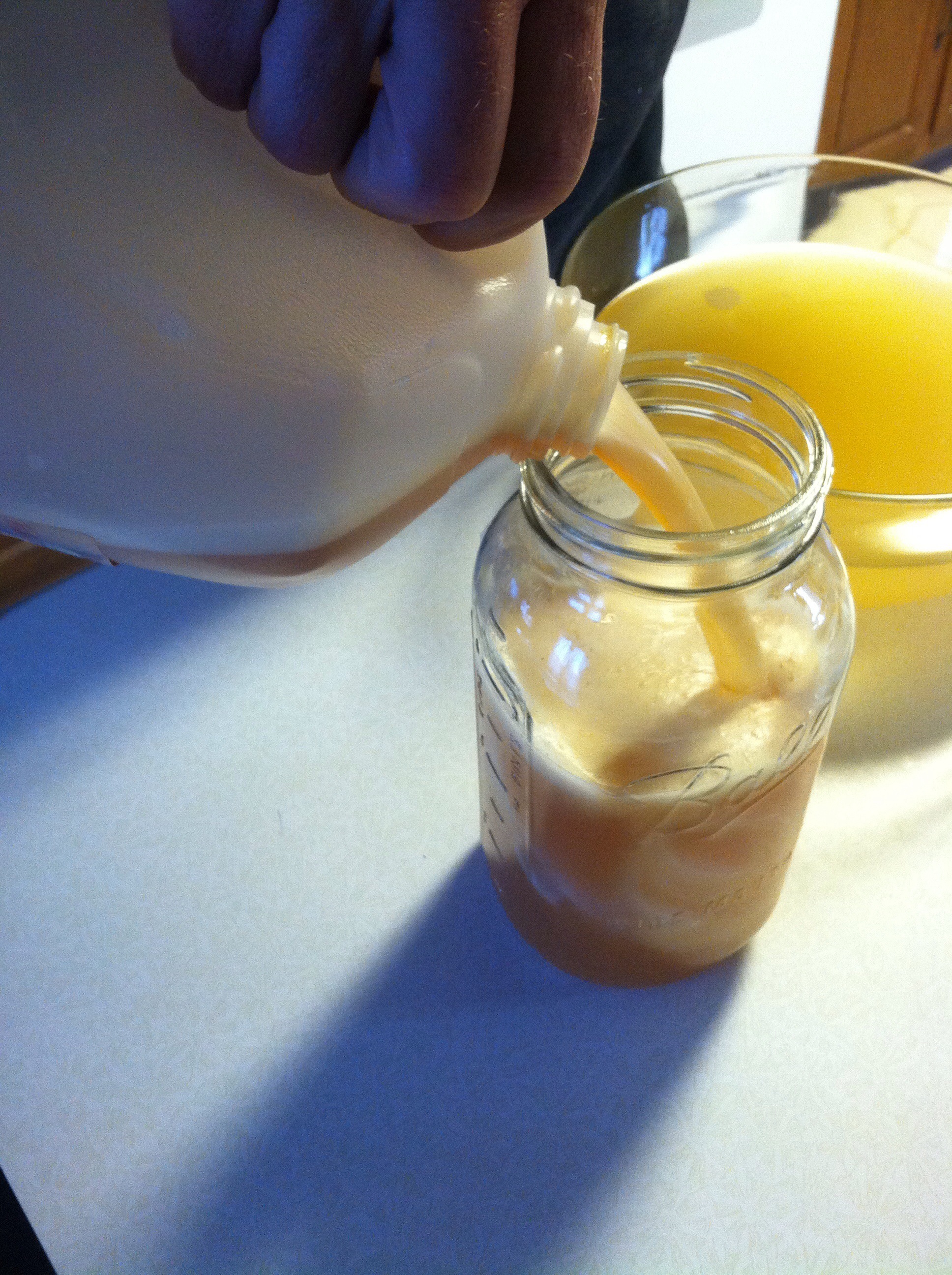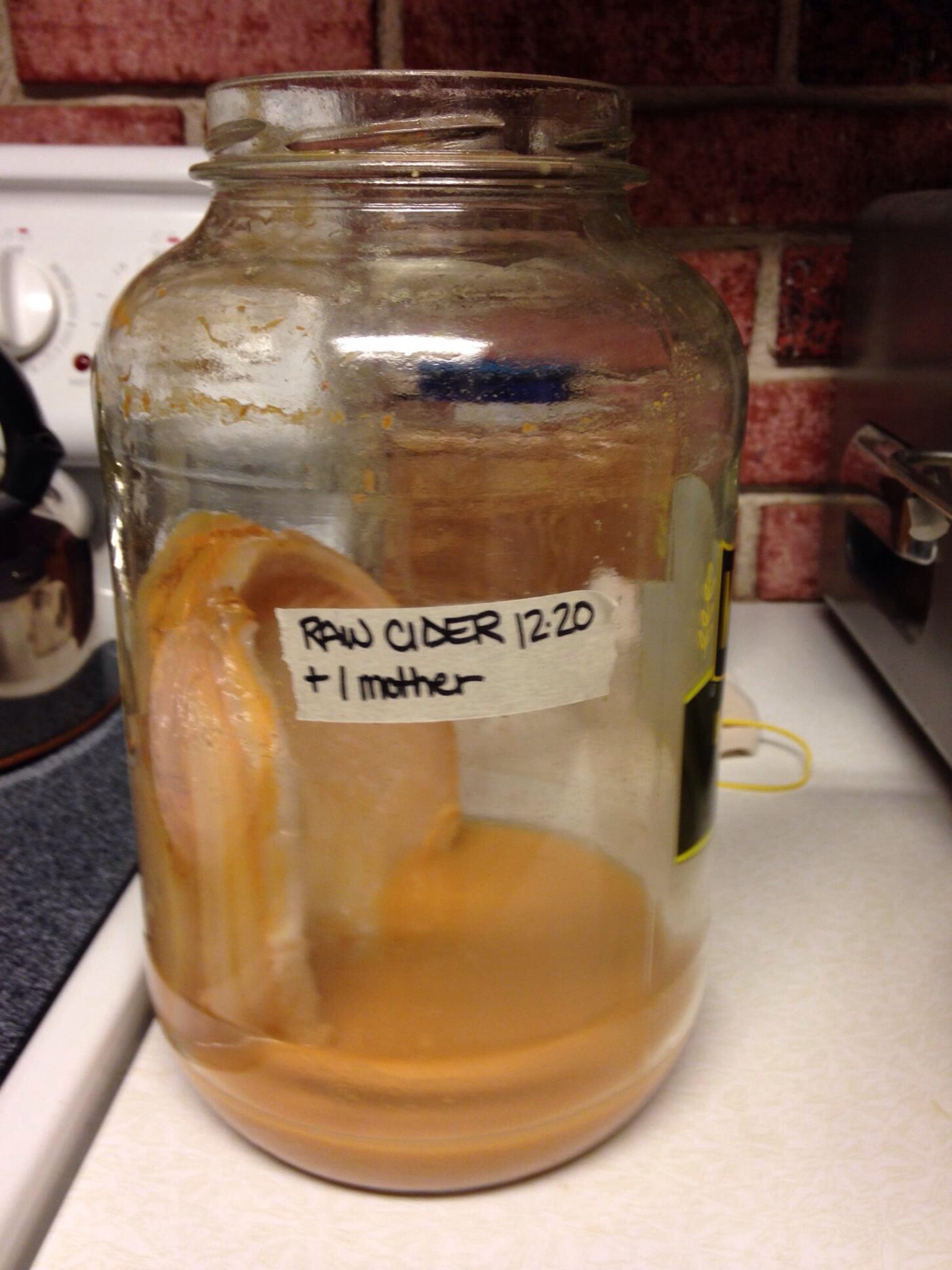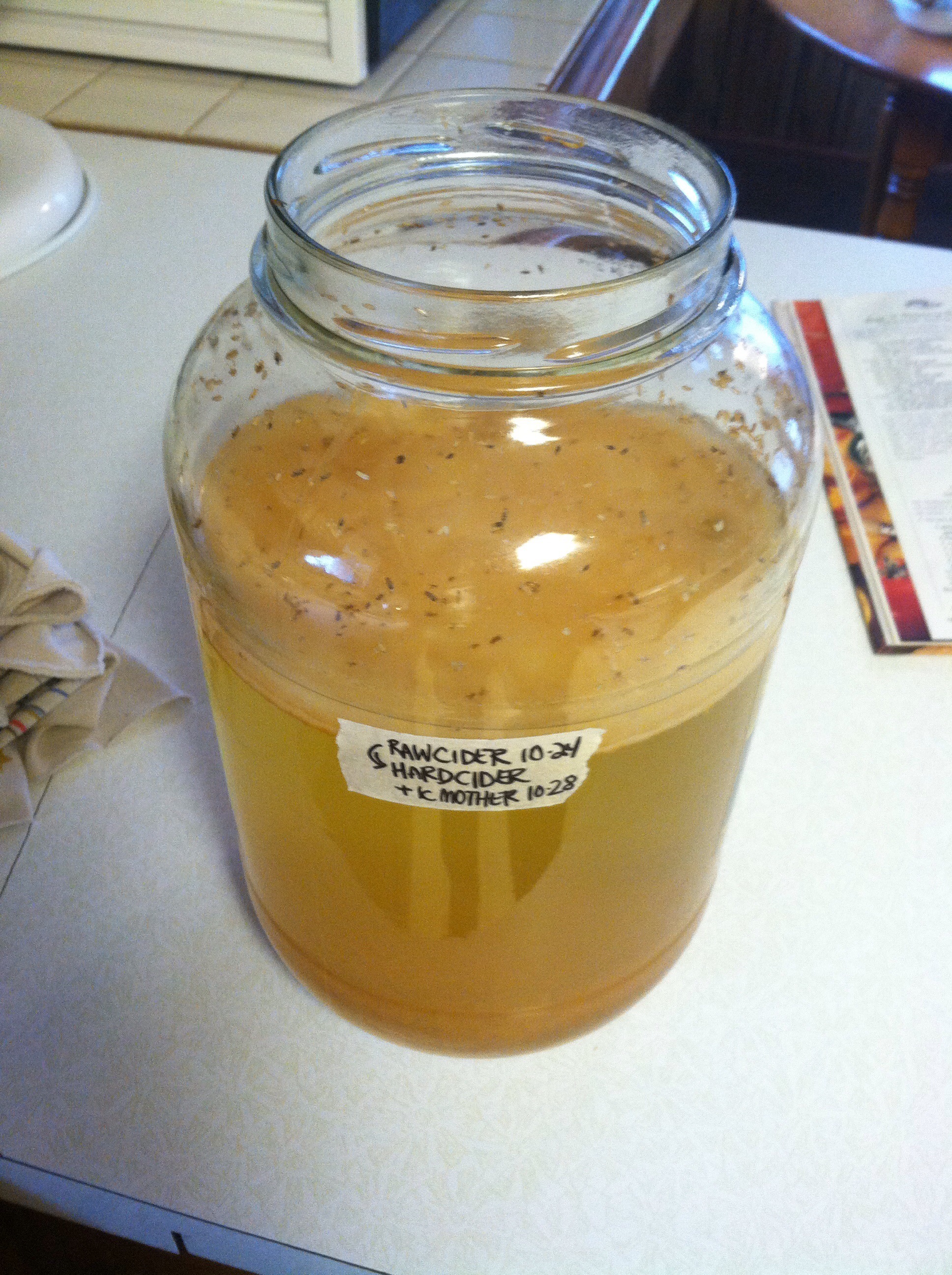 Then we poured new, fresh raw cider in with the two “mothers” to begin a new batch. π