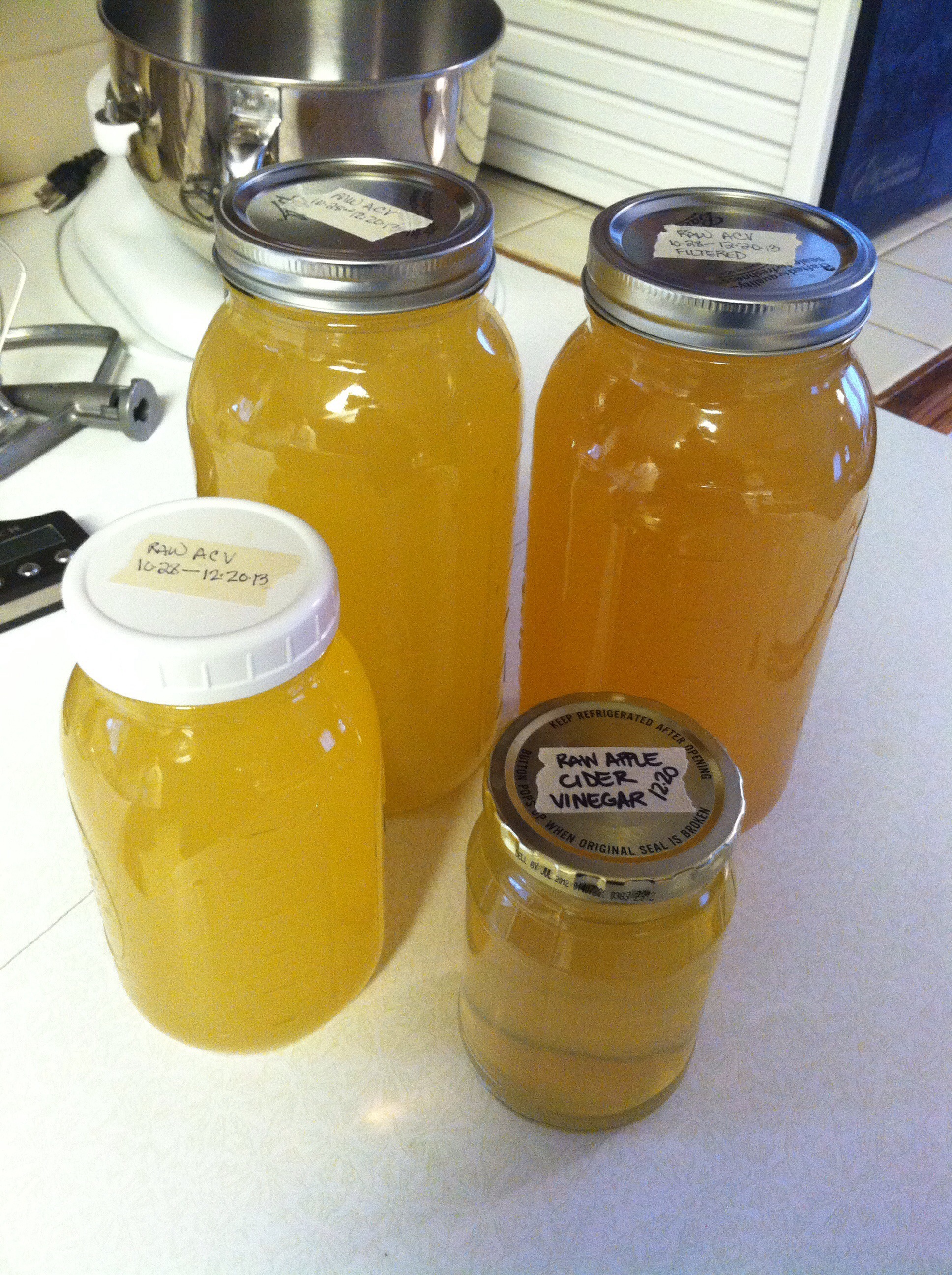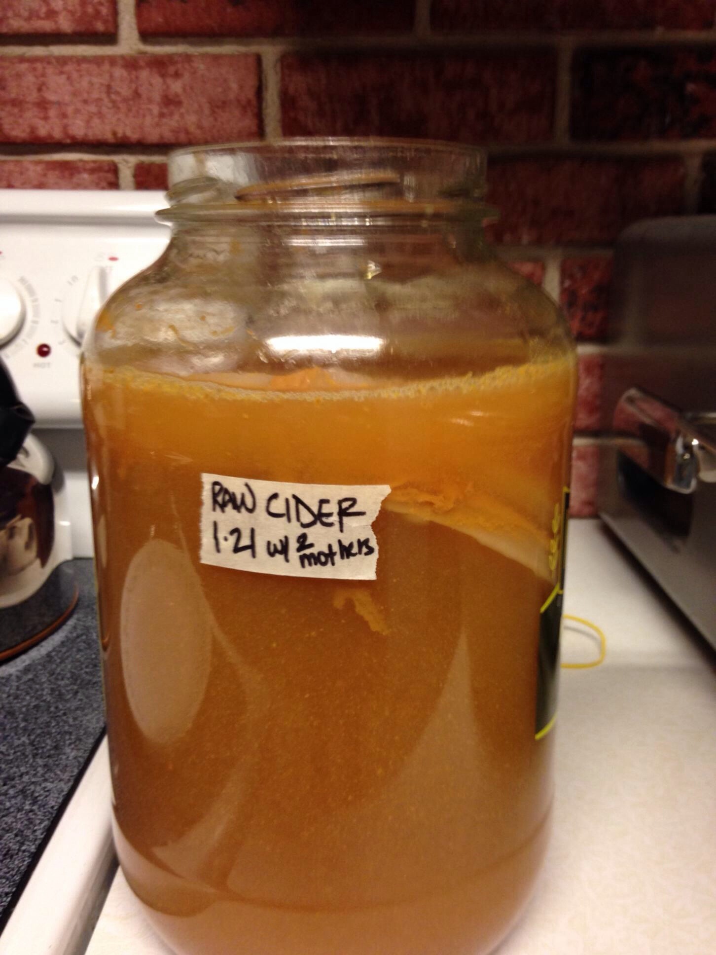 During the summer, we had bought a pint of Alander’s Acres raw apple cider vinegar+”mother”. Then this past fall, we bought some raw apple cider from down in Amish Country. We had read several different articles on how to make your own ACV, and after we were completely overwhelmed, decided to “wing it”, lol… π