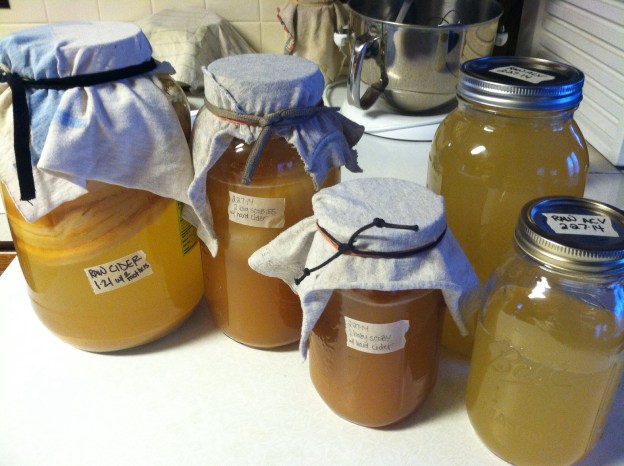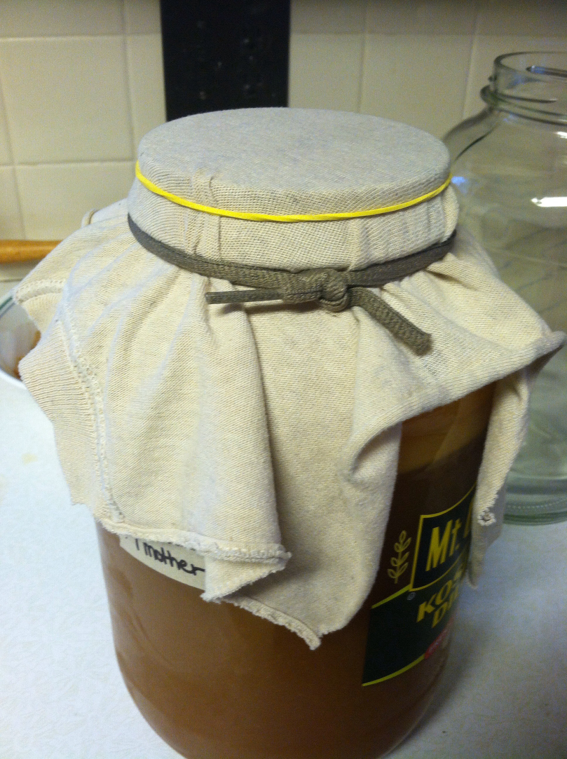 For this new batch that is fermenting right now, we decided to skip the part where we try to turn the cider into hard-cider. Just threw the new “mother” in the fresh gallon of raw cider along with 1c of the raw ACV from the previous batch. Perhaps a future blog post will reveal that outcome… π