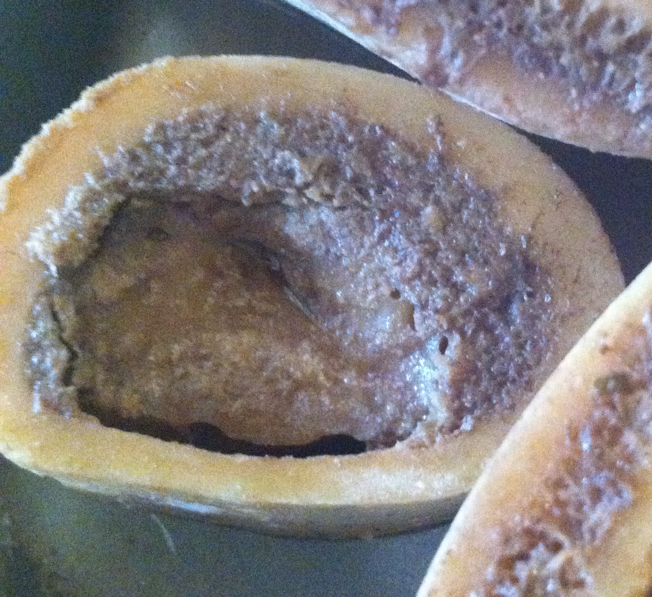 Used up our last quart of broth last week, so its time to simmer another 4 roasters of broth. As I was straining the first two batches of broth on Monday, the strangest thing happened. All the bone marrow was STARING at me! I know, I know. I’ve seen it before, and I acknowledged it, but that was it. “Too weird. Not ready for that yet.” (I distinctly remember thinking that and even saying that to several people when it came up in conversations.)