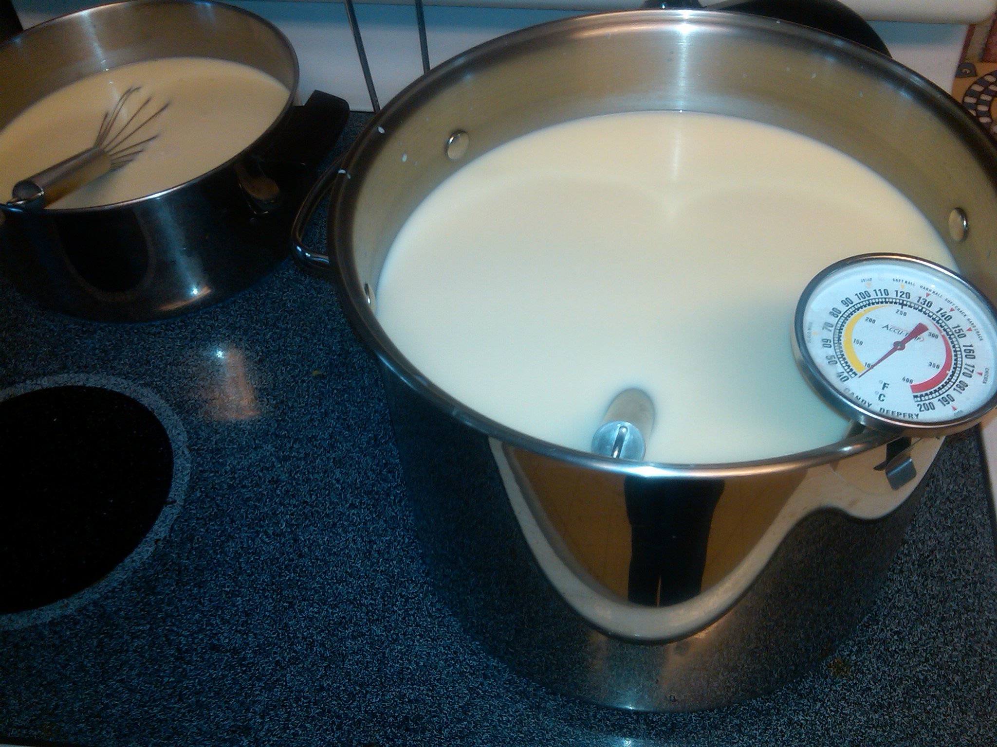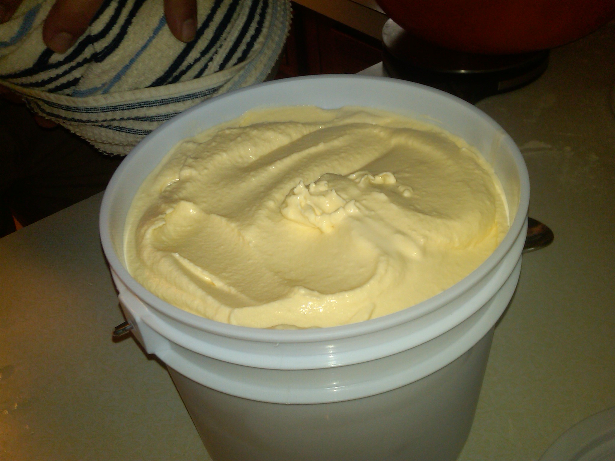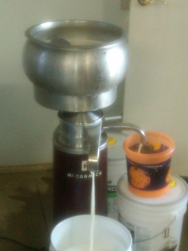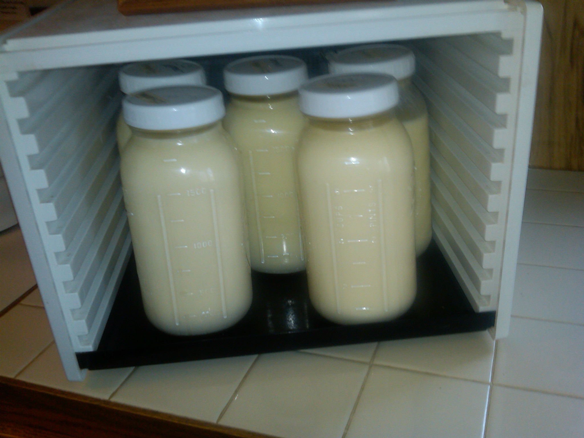 We place the broth in large bowls with lids & let them sit a day or two in the fridge. By then, the fat has solidified on top, and it’s easy to remove the fat layer & begin pressure canning the broth.