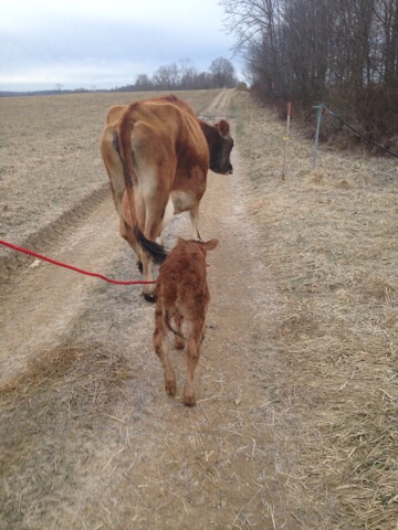 That brings us to todayโs addition, 4-8-23.๐ฎ Weโre partnering with some friends of ours to begin with the first calf this year. They brought over their cow, Helga, along with her week old calf, Monty (think British TV – Gardenersโ World, lol).๐ฎ๐ฌ๐ง Weโre grafting them into our dairy & calf herds, and looking forward to watching them grow alongside ours.โค๏ธ
