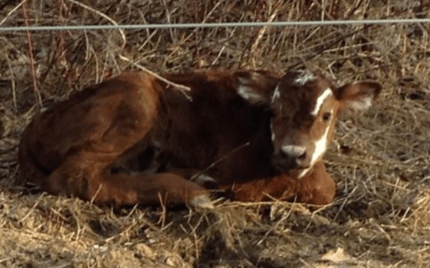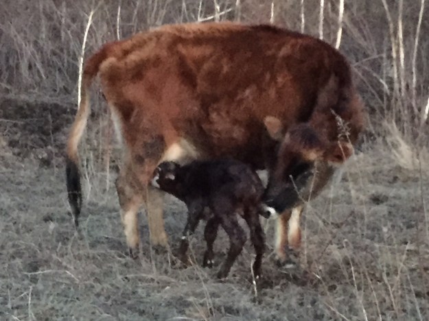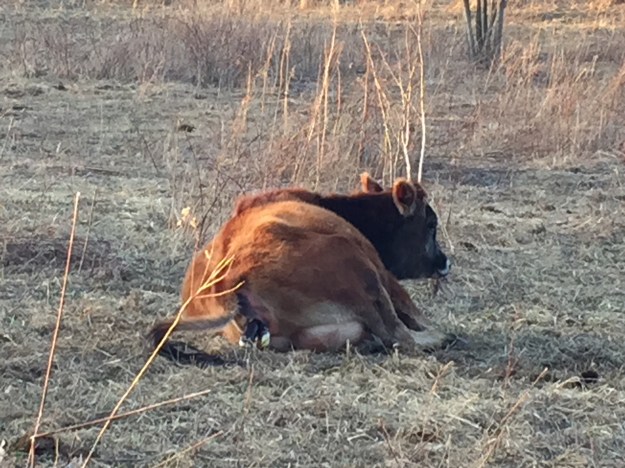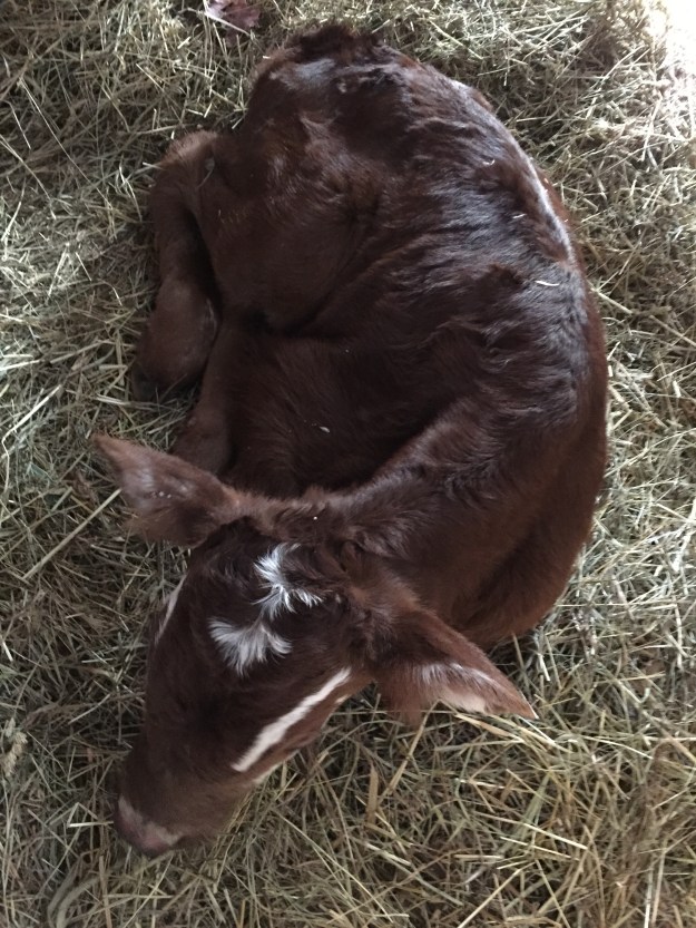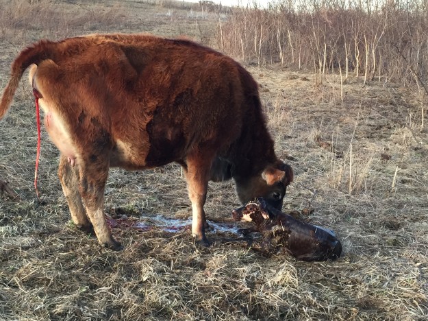 Got up to Mordor this morning and saw our heifer RedRobin looking like this: