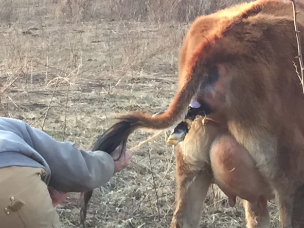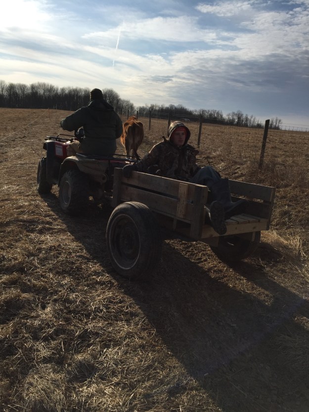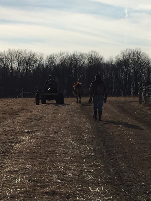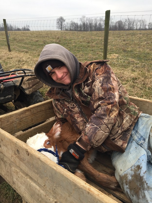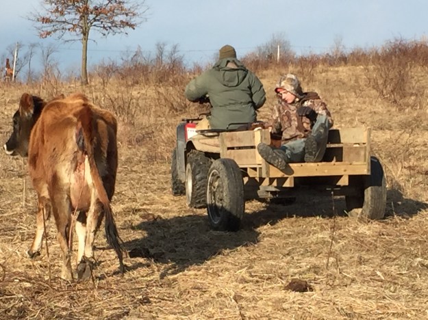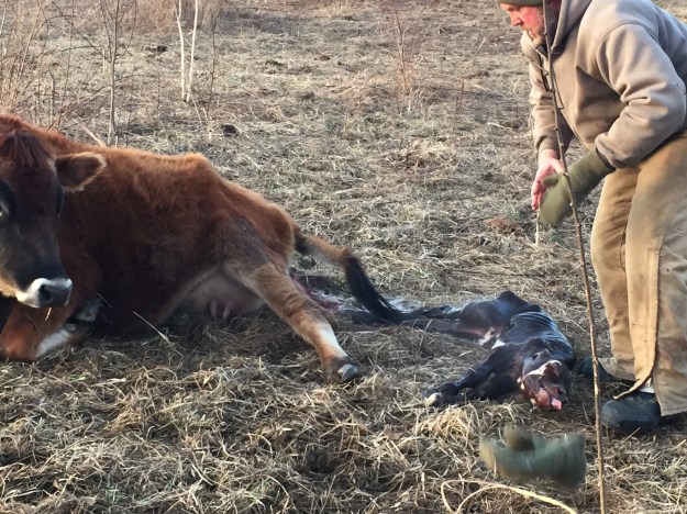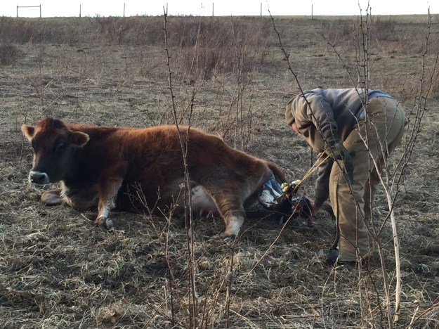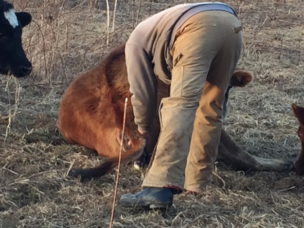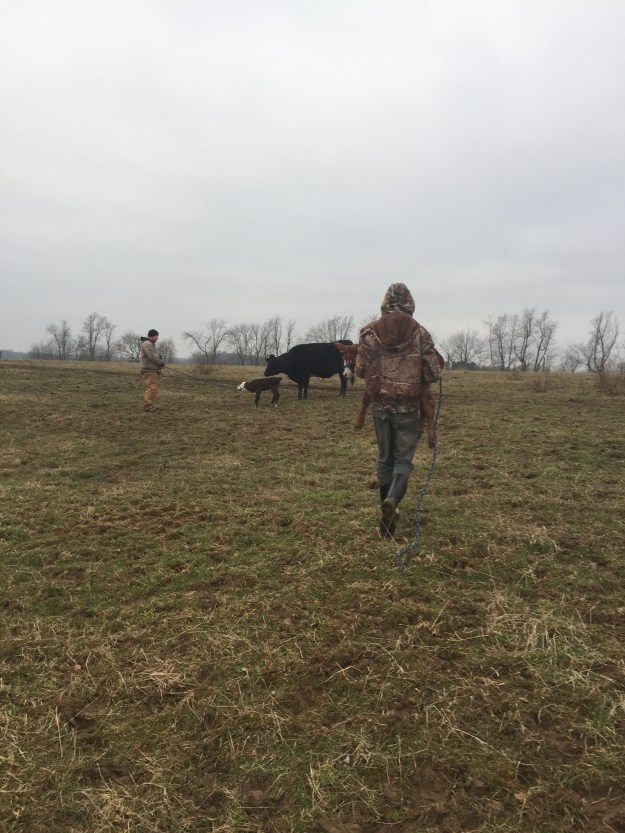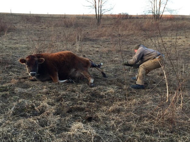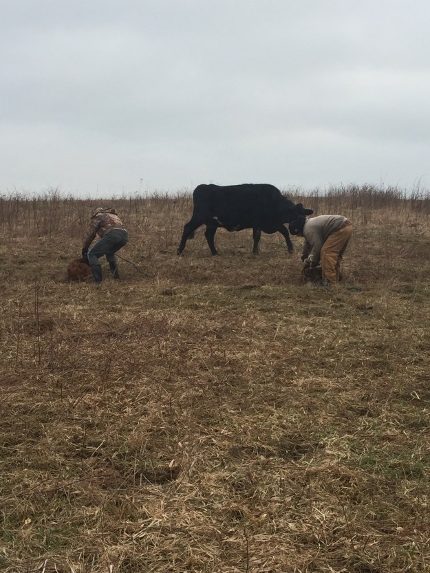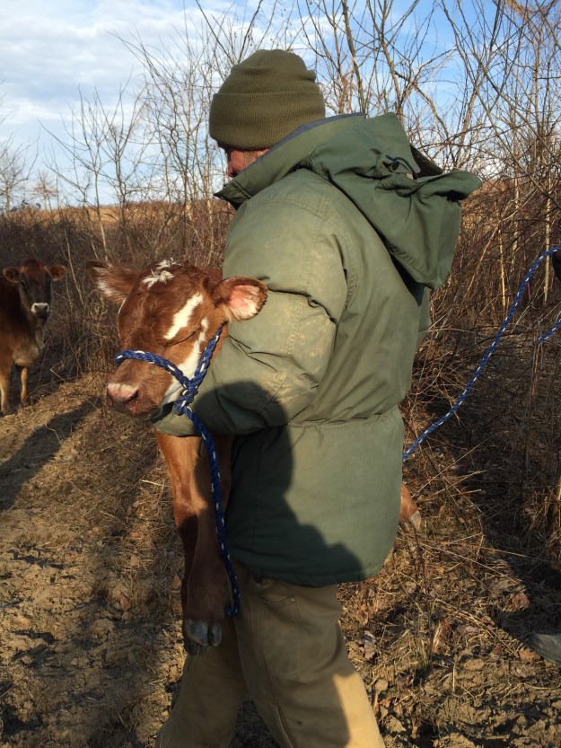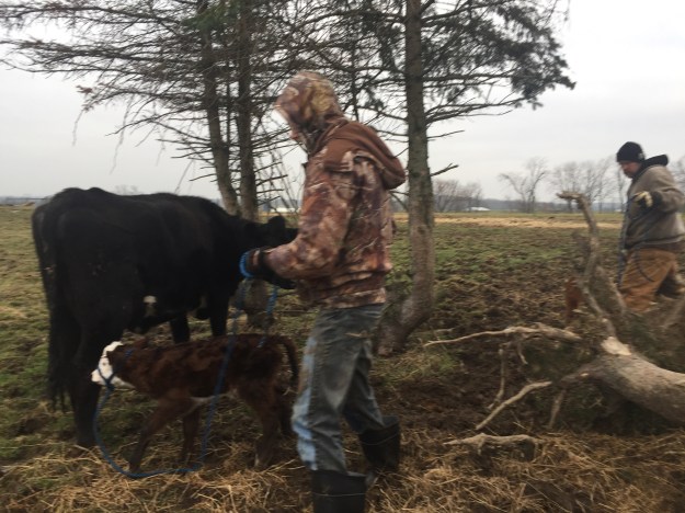 And it took him and Paul to keep the calf from running so they could get the halter on it. NOT fun amidst thick, sticky briars…๐