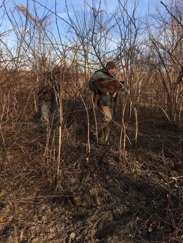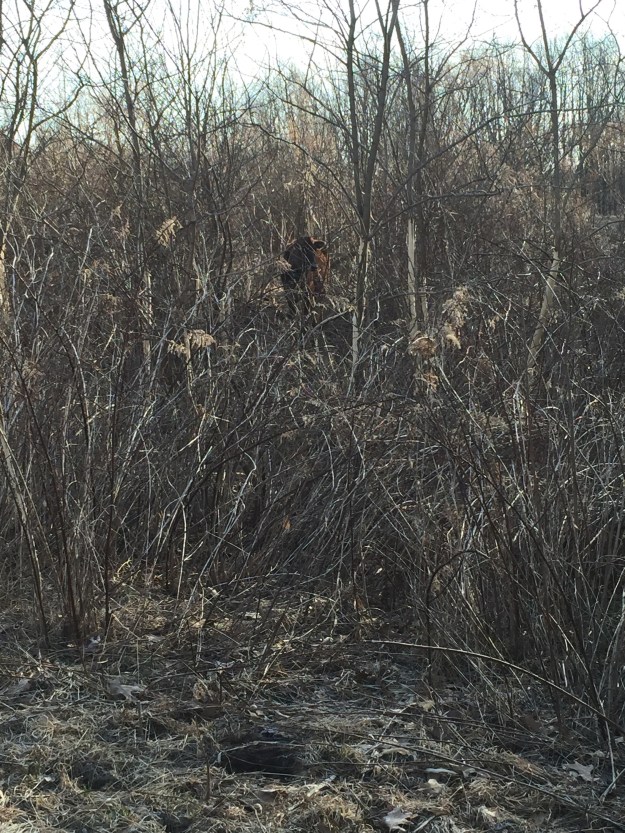 Wasn’t but a couple minutes and Mike spotted the calf. Outside the fence. Encased in briars.๐